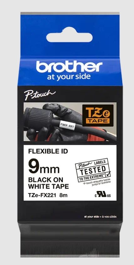 Ideální pro vytváření identifikačních štítků pro kabely, vodiče, PVC trubky nebo jiné válcovité tvary. Speciální lepidlo pásky Brother TZe-FX221 s černým tiskem na bílém podkladu zajišťuje, že vaše důležité štítky budou mít dlouhou životnost. Kompatibilní s tiskárnami štítků P-touch, které mají logo TZ nebo TZe na krytu kazety s páskou.