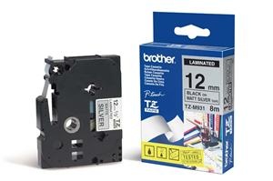 Standardní kazeta TZ pro všechny aktuální modely PT, KAZETY TZ šířky 12mm, LAMINOVANÉ , stříbrná metalická / černá (12mm, laminovaná), délka 8m