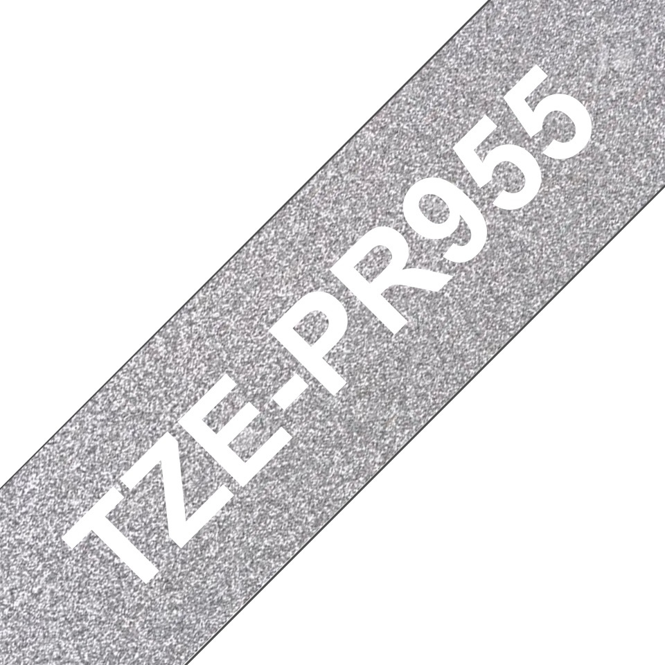 Brother originální páska do tiskárny štítků, Brother, TZE-PR955, bílý tisk/stříbrný podklad, laminovaná, 8m, 24mm