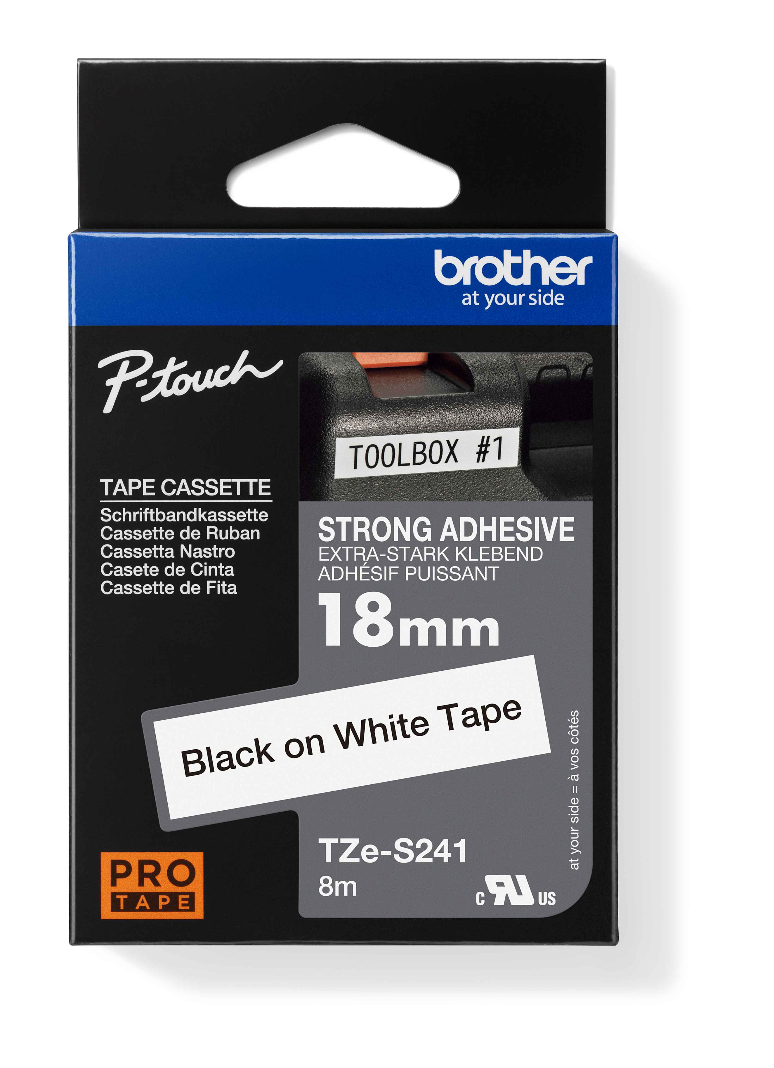 Originální kazeta s laminovanou páskou TZe-S241 kompatibilní s širokou řadou tiskáren Brother P-touch je zvláště všestranná díky své snadno čitelné černé a bílé barvě - ideální pro domácnost domácnosti, kancelář a další pracoviště.