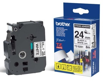 Originální páska Brother TZe-S251 s patentovanou laminovanou ochrannou vrstvou byla vyvinuta s důrazem na trvanlivost v extrémních podmínkách. Díky silnému lepidlu se vyznačuje extrémní přilnavostí a je ideální pro použití na zrnitých površích, jako jsou kovové skříně a strukturované plasty. Kompatibilní s tiskárnami štítků P-touch, které mají logo TZ nebo TZe na krytu kazety s páskou.