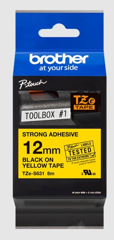 Originální kazeta s laminovanou páskou TZe-S631 kompatibilní s širokou řadou tiskáren Brother P-touch je zvláště všestranná díky své snadno čitelné černé a žluté barvě - ideální pro domácnost domácnosti, kancelář a další pracoviště.