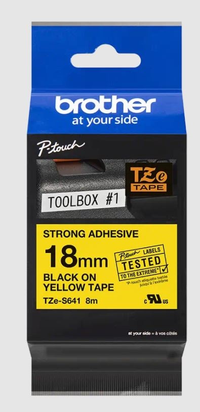 Originální kazeta s laminovanou páskou TZe-S641 kompatibilní s širokou řadou tiskáren Brother P-touch je zvláště všestranná díky své snadno čitelné černé a žluté barvě - ideální pro domácnost domácnosti, kancelář a další pracoviště.