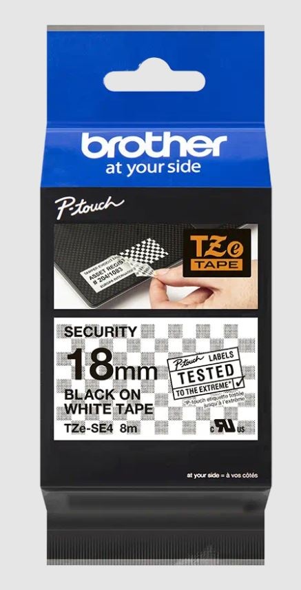 Chraňte se před krádeží a manipulací s originální páskou Brother TZe-SE4. Tato odborně vyvinutá bezpečnostní plombovací páska TZe-SE4 vám přinese jistotu, že okamžitě zjistíte manipulaci se zapečetěným zařízením.