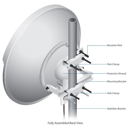 Díky vestavěnému montážnímu systému tzv. rocketkitu je možné na tuto anténu přímo namontovat jakoukoliv jednotku Rocket bez nutnosti instalace dalšího příslušenství. Jednoduše jednotku Rocket zaklapnete a máte hotovo.