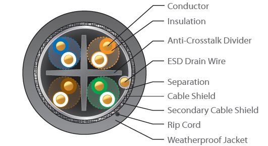 TOUGHCableCARRIER je speciálně designovaný stíněný SFTP kabel kategorie 5e pro extrémní nasazení do nejnáročnějších meteorologických podmínek zásadně eliminující rizika poškození venkovních instalovaných aktivních prvků atmosférickým přepětím.