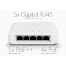 Jeho největší předností je gigabitový POE IN na portu č.1 pro snadnou expanzi sítě i do míst, kde není možné vybudovat elektrickou zásuvku. Switch lze napájet jak aktivně (802.3af/at), tak pasivně pomocí 44-57V adaptéru. Switch lze kromě PoE napájet i přes USB-C adaptér se specifikací 5V/1A.