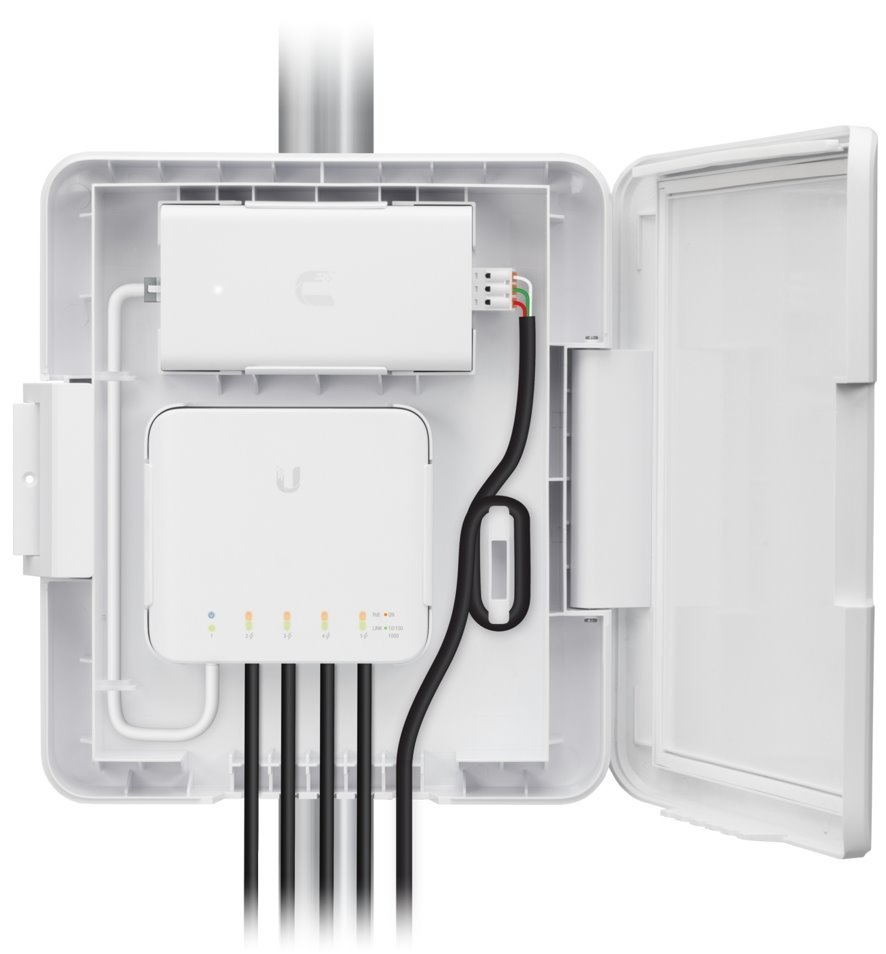 USW-Flex-Utility je venkovní krabice odolná proti povětrnostním vlivům speciálně navržená pro použití s UniFi Switch Flex (USW-Flex) zařízením. USW-Flex-Utility lze snadno namontovat na jakýkoliv sloup, poskytuje naprosto jednoduchou správu kabelů a zabezpečení šroubem.