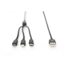 Nabíjecí kabel DIGITUS® 3 v 1 je ideální pro nabíjení přenosných zařízení pomocí konektorů USB-C™, Apple lightning nebo Micro-B do napájecího adaptéru, počítače nebo jiného zařízení pomocí portu USB A. K nabíjení všech zařízení použijte jeden kabel. Díky kompaktním rozměrům je tento kabel ideálním společníkem pro domácí, kancelářské nebo cestovní cesty.