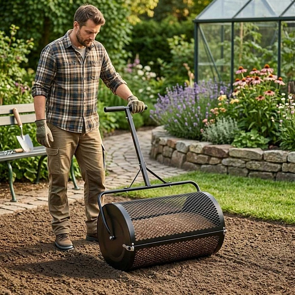 Válec na substrátVelmi užitečná věc pro roznos kompostu nebo travního substrátu po vašem trávníku. Objem je 80l vhodné pro 50l zeminy. Zachytí velké kusy, rovnoměrně rozneše po vašem trávníku. Ideální v případě přesevu trávníku. Velmi tenkou vrstvou zakryje travní semeno čímž zabráníte zaschnutí klíčků. Skvělý pomocník při zakládání trávníku.Šířka 60cmPrůměr 40cmMadlo 2v1Objem 75 itrů