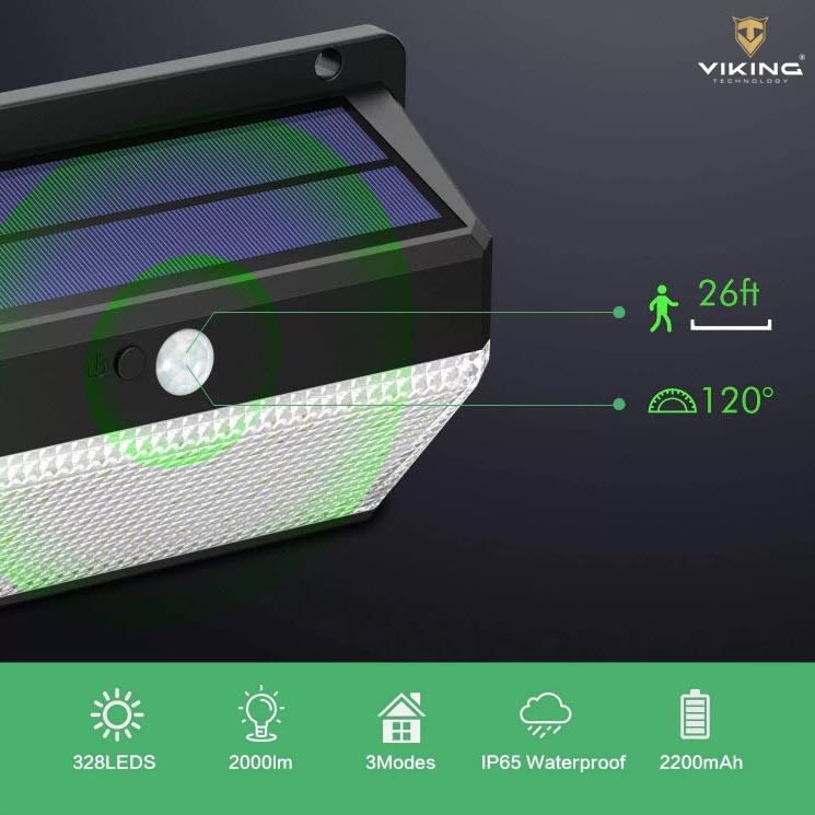•Solární LED světlo s pohybovým senzorem a s 328ks vysoce svítícími LED diodami bez možnosti připojení k elektrické síti, jako je např. zahrada, vstup do domu atd.