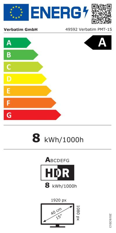 Verbatim PMT-15 Přenosný dotykový monitor 15,6" Full HD 1080P kovový kryt, podporuje kapacitní 10bodový dotyk, filtr ochrany zraku, IPS panel, technologie HDR, neoprenový ochranný obal.