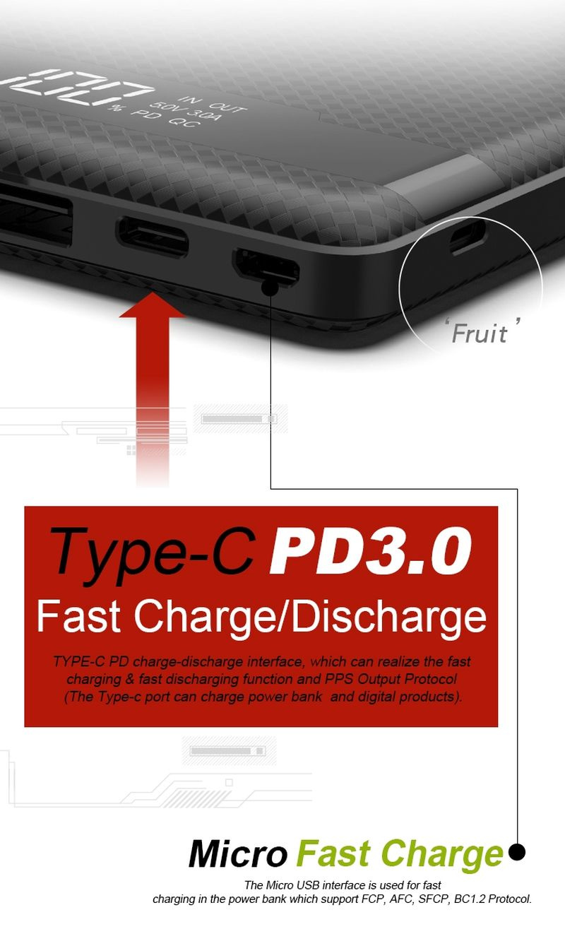 Powerbanka Viking PN-962PD 20000?mAh podporuje moderní technologie rychlého nabíjení PD 3.0 (Power Delivery) a QC 4.0+ (Quick Charge), díky kterým nabijete kompatibilní zařízení mnohem rychleji než běžnou nabíječkou – například mobil až na 50?% kapacity za krátkou dobu. Funguje jak s Androidem, tak s Apple zařízeními, pokud podporují rychlé nabíjení.