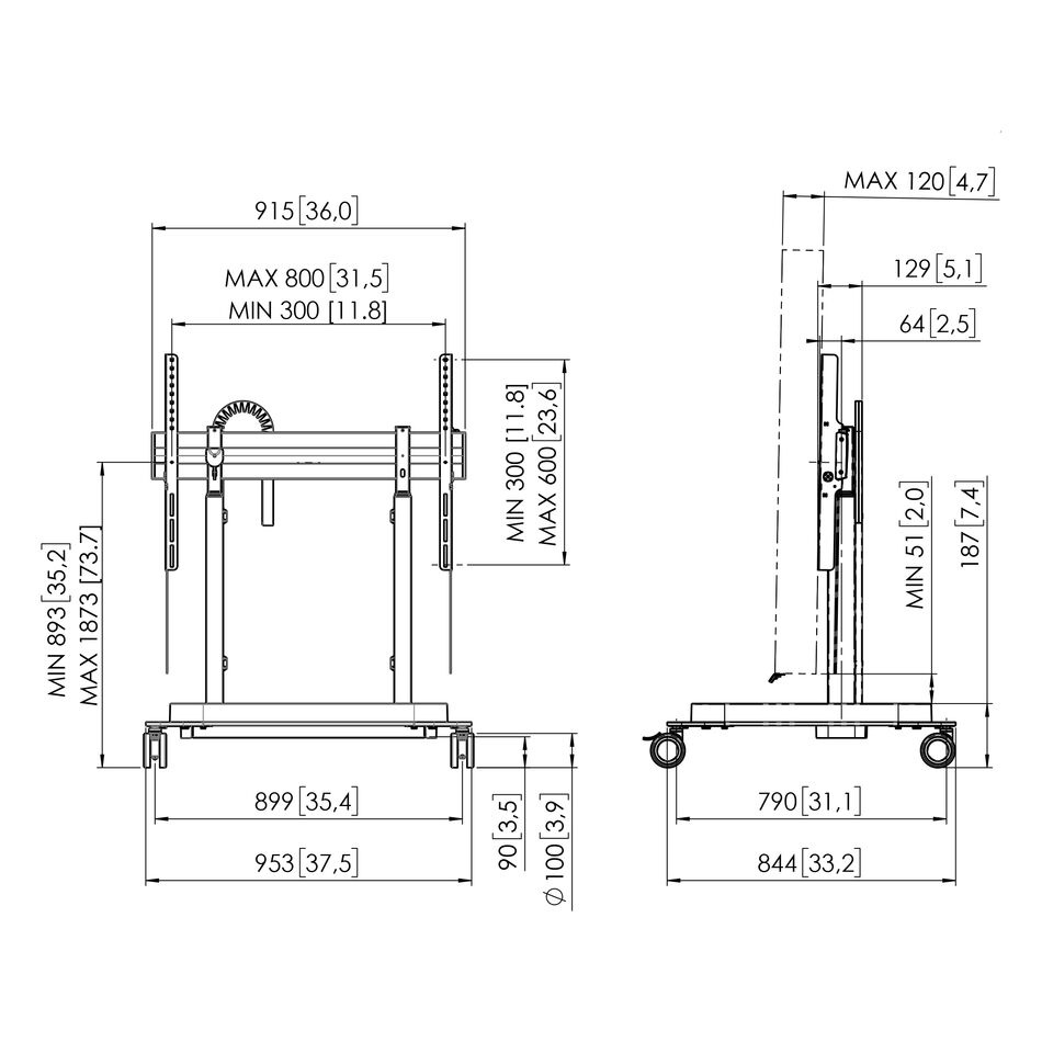 Vogel's RISE 5305 pojízdný podlahový lift 98", dvojitý, 893-1873 mm, dvojitá kola