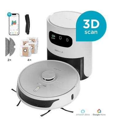 3D robotický vysavač Concept VR3450 podporuje ovládání prostřednictvím hlasového asistenta Amazon Alexa nebo Google Home. Můžete ho tedy zapojit do své chytré domácnosti a ovládat hlasovými povely.