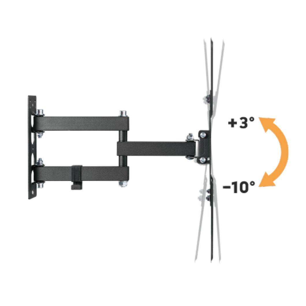 Výsuvný nástěnný držák LPA68-443 je určen pro instalaci TV s plochou obrazovkou s úhlopříčkami od 23“ do 55“. Má robustní výsuvnou konstrukci, díky níž unese TV o hmotnosti až 30 kg, zároveň je možné nastavit vzdálenost TV od stěny v rozsahu 60 mm až 382 mm. Samozřejmostí je pak také velký rozsah polohování. Držák umožňuje snadné naklápění TV v rozsahu +3°~-10° a natočení do stran v rozsahu +90°~-90°, což zaručuje pohodlné sledování z libovolného místa v místnosti. Integrovaná svorka na kabely udržuje kabely uspořádané a chráněné.