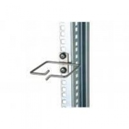 Kovový vyvazovací háček z leštěného nerezu pro lepší organizaci kabelů v rozvaděči.