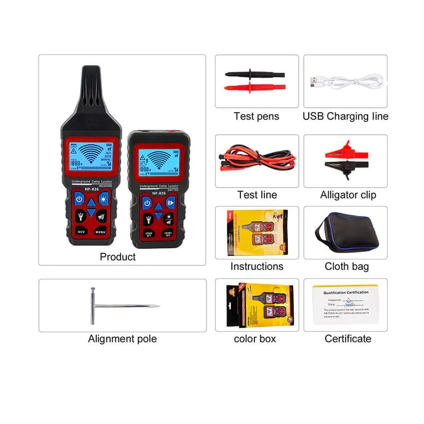 Hledačka kabelů a NCV WSNF826, voltmetr, LCD displej, délka 1000m, hloubka až 2m, AD/DC 12 - 400V.