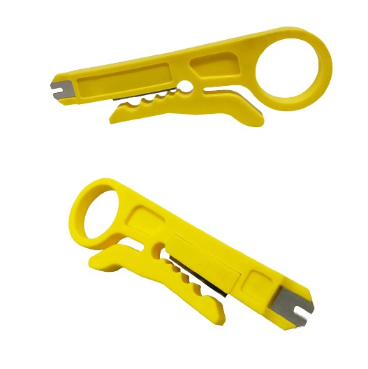 Univerzální stripovací nástroj pro UTP/FTP kabely, Ekonomický stripovač UTP/FTP kabelu - jednoduché ořezání vnější izolace UTP/FTP kabelu. Na konci stripovače je zapuštěn nůž, který slouží k terminaci vodičů do svorkovnic.