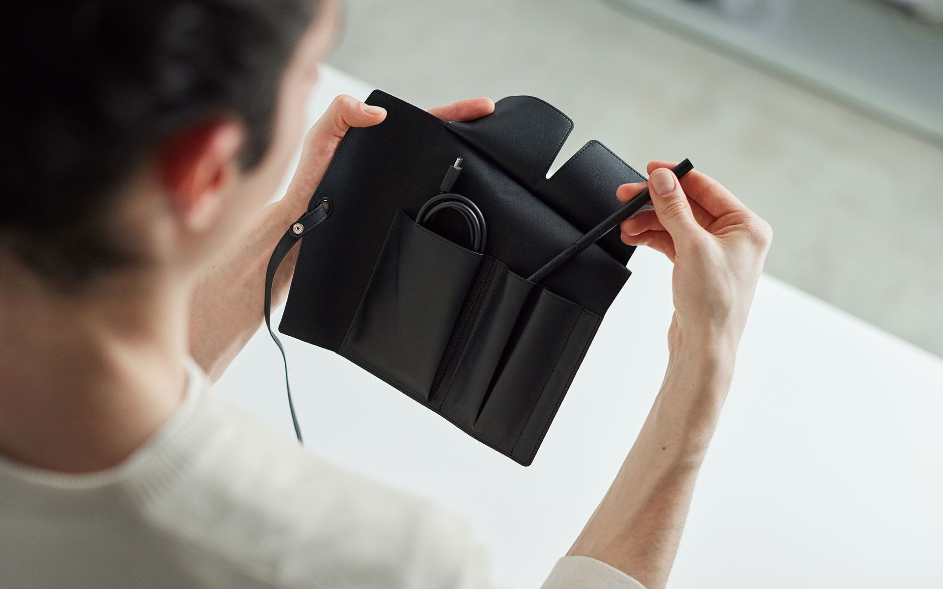 Udržujte si své nezbytnosti uspořádané v koženém rolovacím pouzdře Wacom. Je navrženo pro kreativce na cestách a nabízí bezpečné přihrádky pro stylové uložení per, kabelů a drobného příslušenství. Kompaktní, odolné a snadno přenosné.