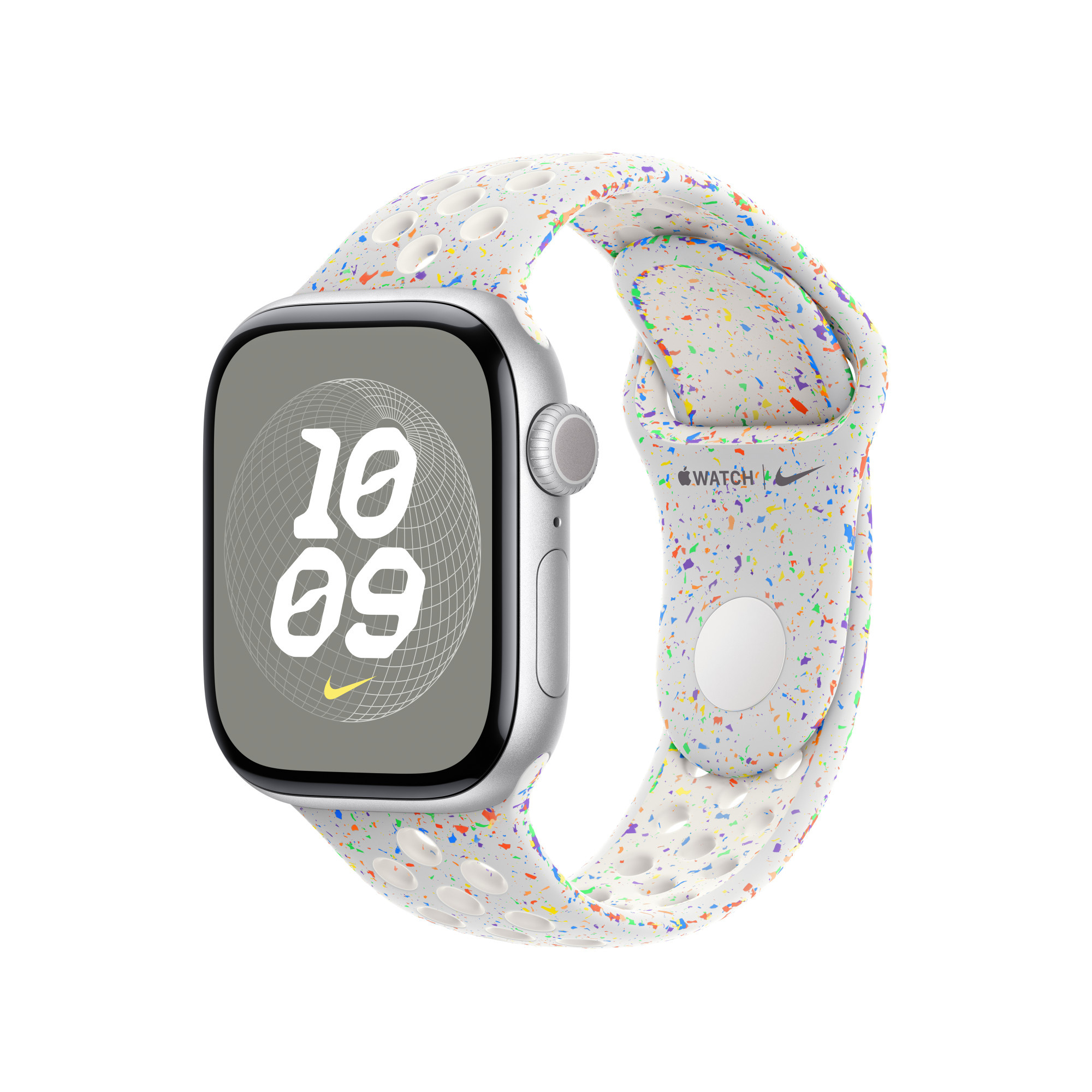 Tenhle sportovní řemínek Nike má vylisované otvory pro větší vzdušnost, je odolný, pevný a přitom krásně poddajný. Obsahuje barevné vločky vytvářející náhodné vzory, takže každý řemínek je originál. Jeho hladký, hutný materiál se elegantně ovine kolem zápěstí a příjemně sedí. A nově se zapíná na hliníkový kolíček s matným povrchem.