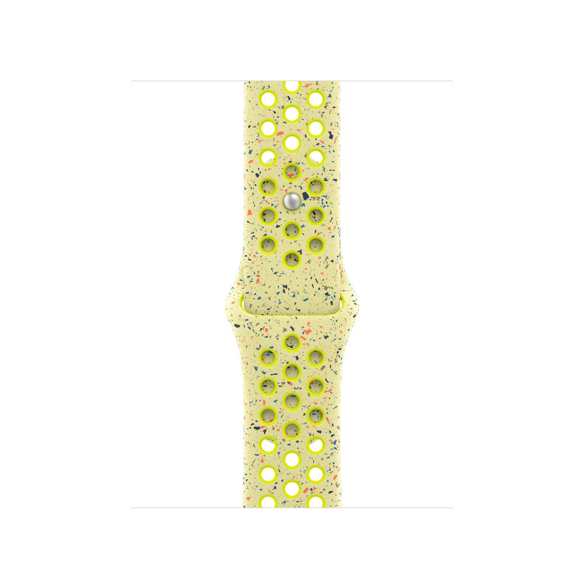 Tenhle sportovní řemínek Nike má vylisované otvory pro větší vzdušnost, je odolný, pevný a přitom krásně poddajný. Obsahuje barevné vločky vytvářející náhodné vzory, takže každý řemínek je originál. Jeho hladký, hutný materiál se elegantně ovine kolem zápěstí a příjemně sedí. A nově se zapíná na hliníkový kolíček s matným povrchem.