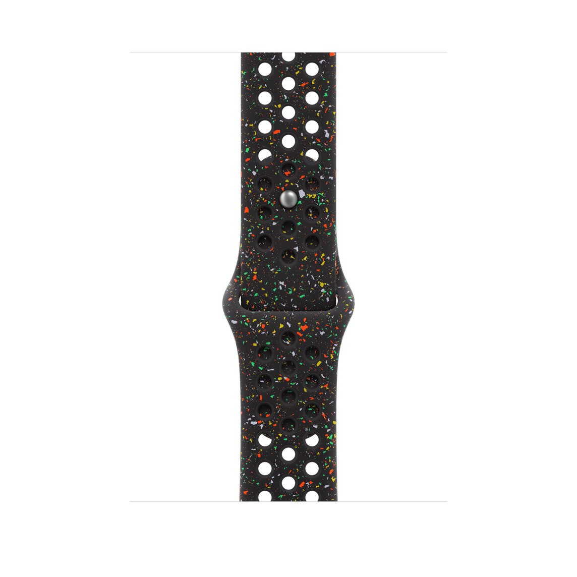 Tenhle sportovní řemínek Nike má vylisované otvory pro větší vzdušnost, je odolný, pevný a přitom překvapivě poddajný. Obsahuje barevné vločky, které tvoří náhodné vzory, takže každý řemínek je originál. Jeho hladký, hutný materiál se elegantně ovine kolem zápěstí a příjemně sedí. A zapíná se na hliníkový kolíček s matným povrchem, do kterého je pečlivě vygravírované logo Nike Run.