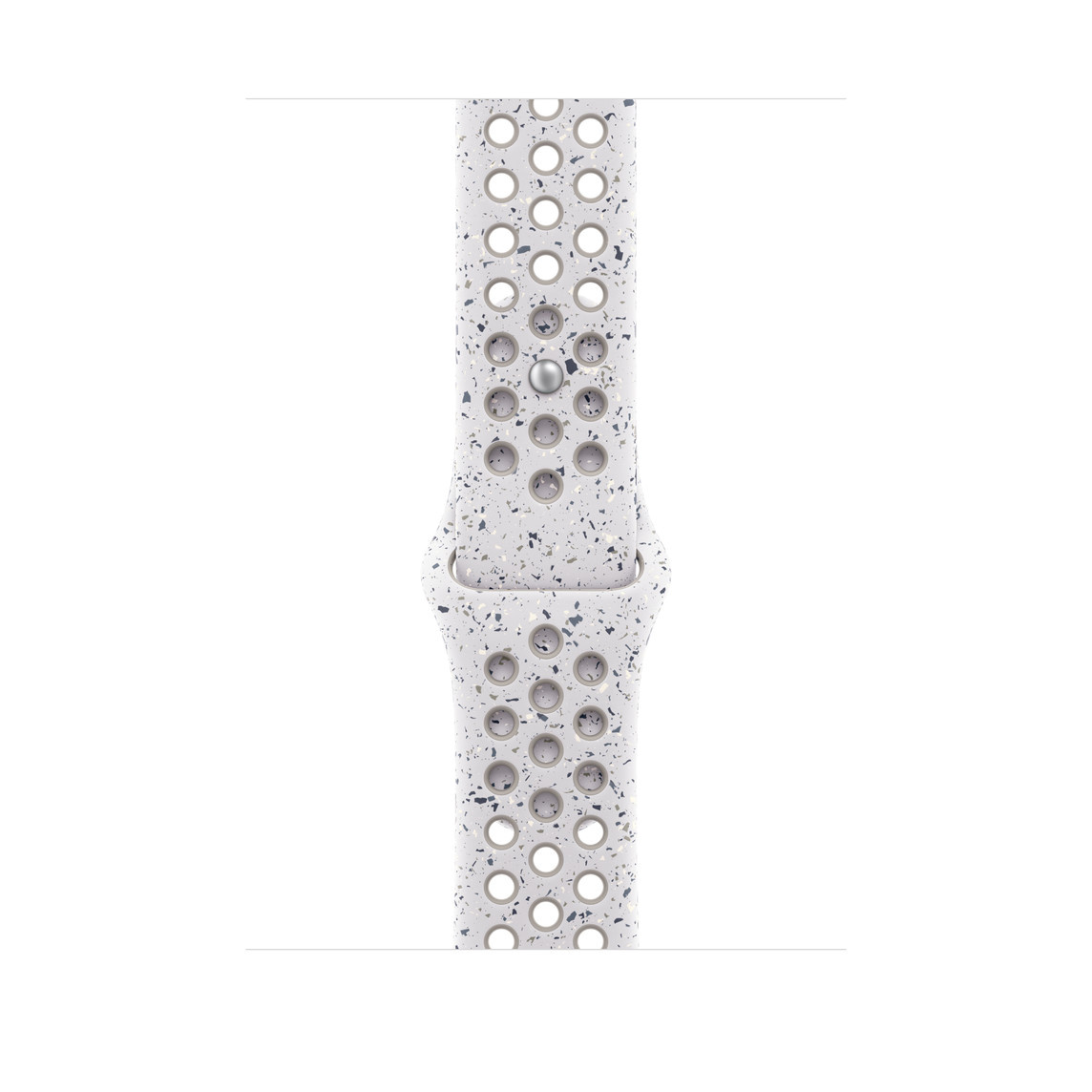 Tenhle sportovní řemínek Nike má vylisované otvory pro větší vzdušnost, je odolný, pevný a přitom překvapivě poddajný. Obsahuje barevné vločky, které tvoří náhodné vzory, takže každý řemínek je originál. Jeho hladký, hutný materiál se elegantně ovine kolem zápěstí a příjemně sedí. A zapíná se na hliníkový kolíček s matným povrchem, do kterého je pečlivě vygravírované logo Nike Run.
