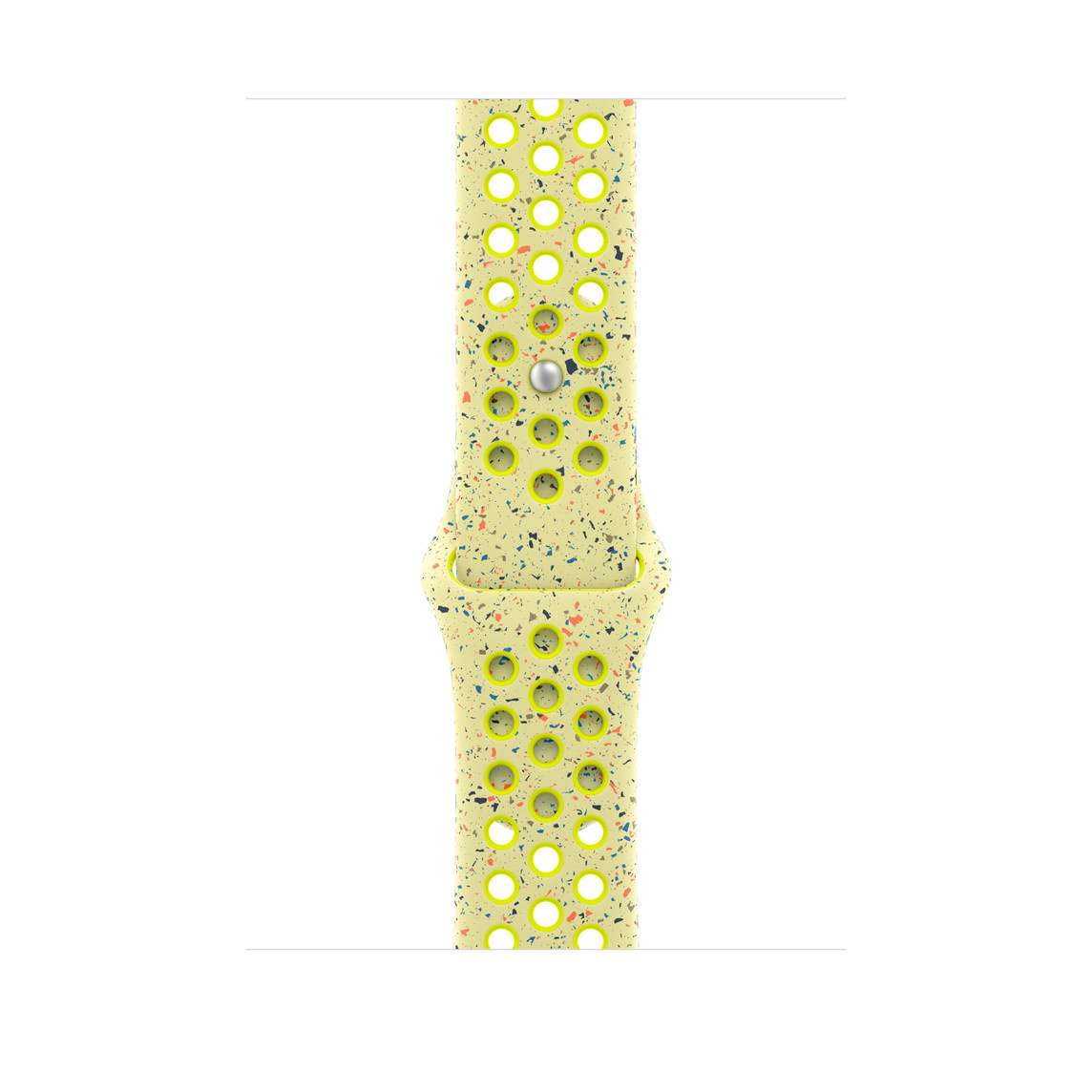 Tenhle sportovní řemínek Nike má vylisované otvory pro větší vzdušnost, je odolný, pevný a přitom překvapivě poddajný. Obsahuje barevné vločky, které tvoří náhodné vzory, takže každý řemínek je originál. Jeho hladký, hutný materiál se elegantně ovine kolem zápěstí a příjemně sedí. A zapíná se na hliníkový kolíček s matným povrchem, do kterého je pečlivě vygravírované logo Nike Run.