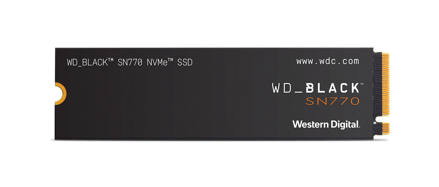 SSD disky WD_BLACK SN770 NVMe jsou dostupné v kapacitách až 2 TB, poskytují spoustu úložného prostoru na nejnovější hry a ještě vám zbude místo na budoucí aktualizace i obsah ke stažení.