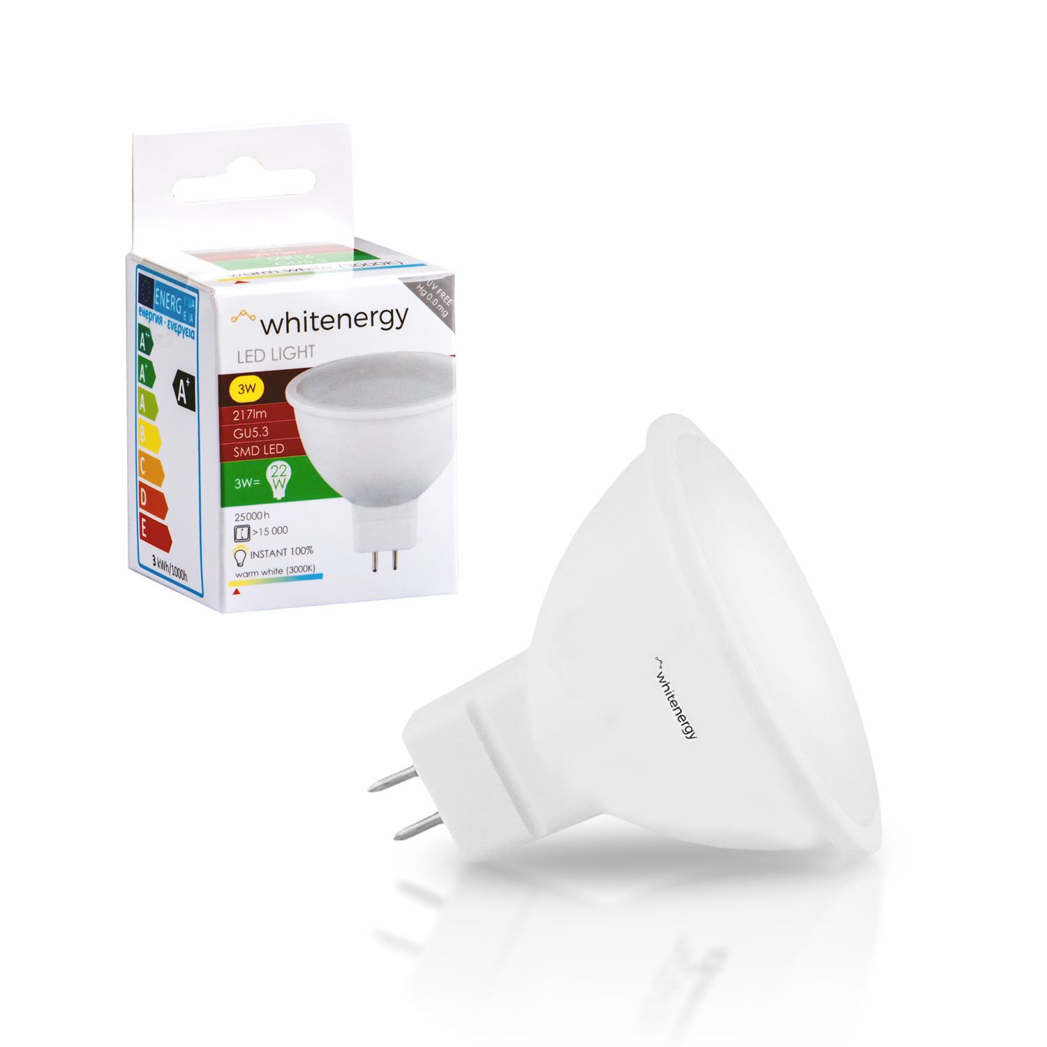 WE LED žárovka SMD2835 MR16 GU5.3 3W teplá bílá