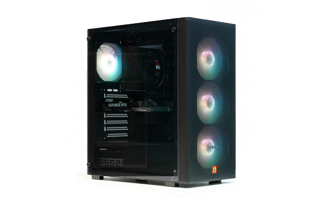 Počítač je osazen ve skříni s moderním síťovaným designem panelů, který zajišťuje velmi dobré proudění vzduchu a efektivní chlazení komponent. Skříň je vybavena 4× 120mm ARGB ventilátory.