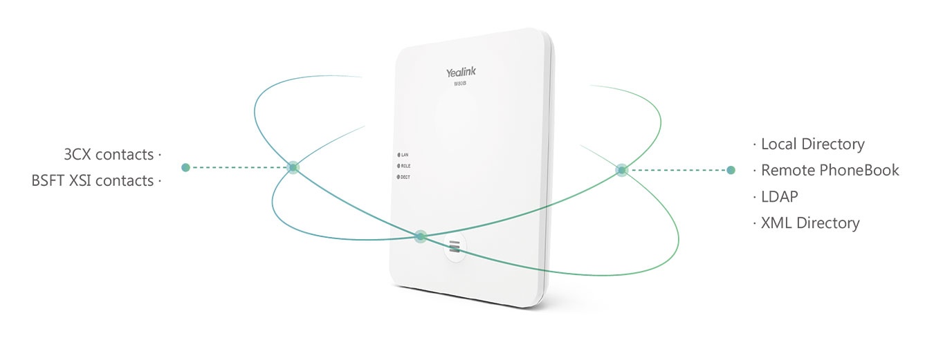Systém nabízí snadný přístup k několika telefonním seznamům, včetně lokálního a vzdáleného telefonního adresáře, LDAP a XML telefonního seznamu. Navíc je široce kompatibilní s PBX kontakty, včetně 3CX a BSFT XSI.