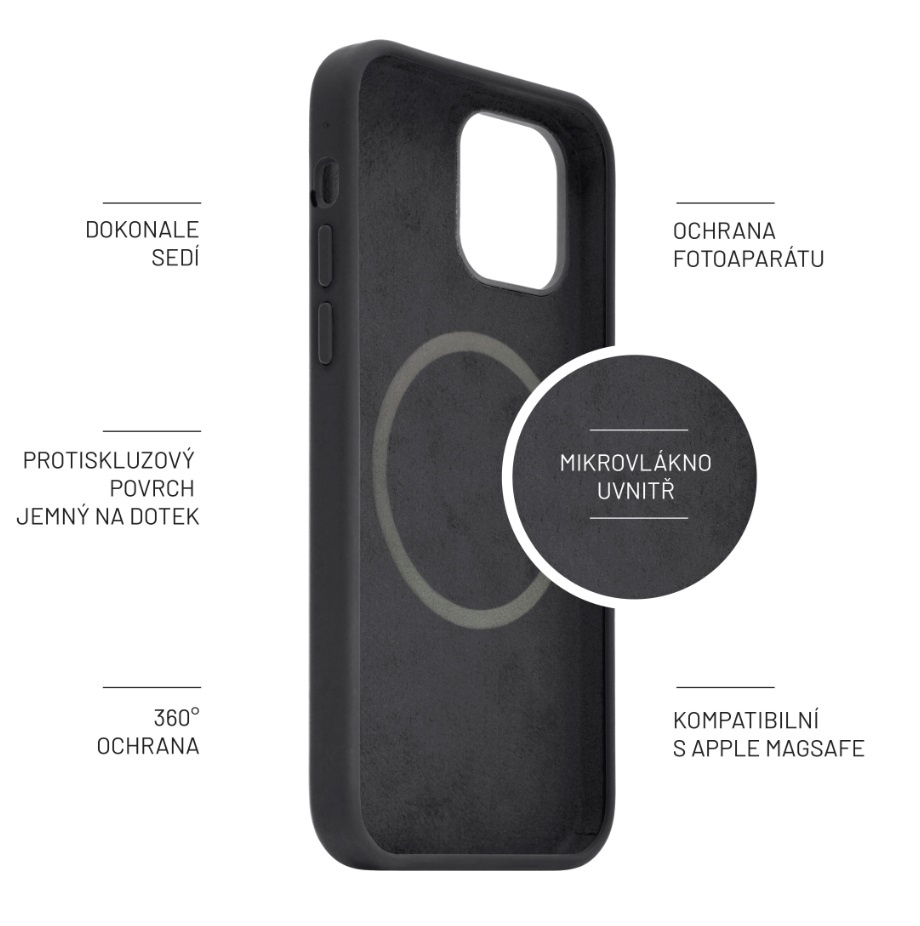 FIXED Flow s podporou funkce MagSafe představuje tvrzený barevný kryt, který spolehlivě udrží váš iPhone v bezpečí, a navíc skvěle vypadá. Jeho povrch tvoří tzv. Liquid silicon - lehký a přesto odolný materiál, který je oproti klasickým silikonovým krytům hebký na dotek, neklouže a příjemně se drží v ruce. Na vnitřní straně chrání vložený telefon vystýlka z mikrovlákna. Díky integrovaným magnetům kryt dokonale přilne k telefonu a perfektně spolupracuje s veškerým MagSafe příslušenstvím. Bezdrátové nabíjení tak bude jednodušší a efektivnější než kdy dříve, stačí přicvaknout MagSafe nabíječku přímo ke krytu. Tělo krytu FIXED Flow je vyztuženo tvrzenou skořepinou a může se tak pochlubit vysokou odolností před různými pády a nárazy. Lehce přesahující okraje krytu chrání displej telefonu i čočku fotoaparátu před poškrábáním například při položení na stůl. FIXED Flow je navržen přesně na míru danému modelu telefonu, dokonale sedí a myslí i na krytky ovládacích tlačítek a přesné výřezy pro reproduktory, nabíjecí konektor i fotoaparát.