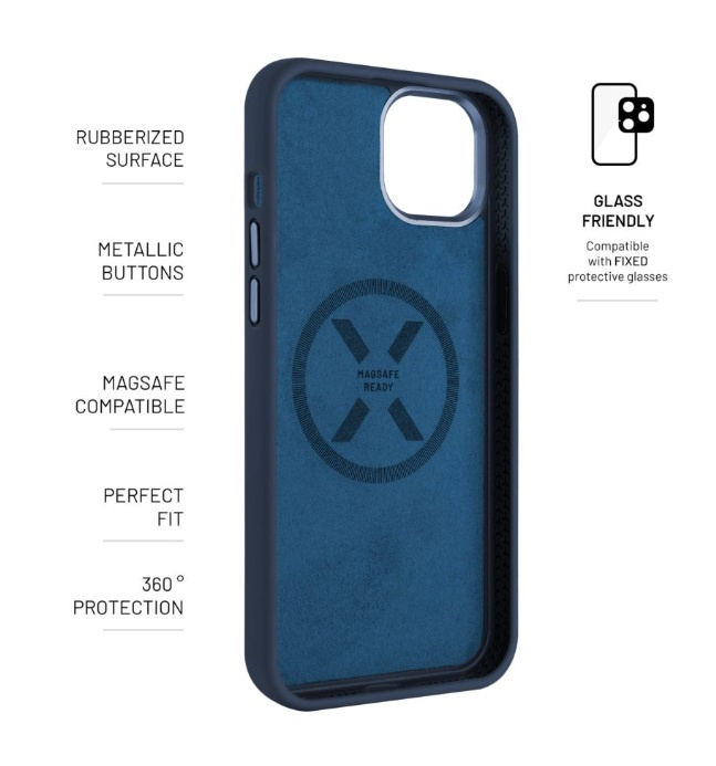 Zadní kryt FIXED MagFlow s podporou MagSafe pro Apple iPhone 15, modrý