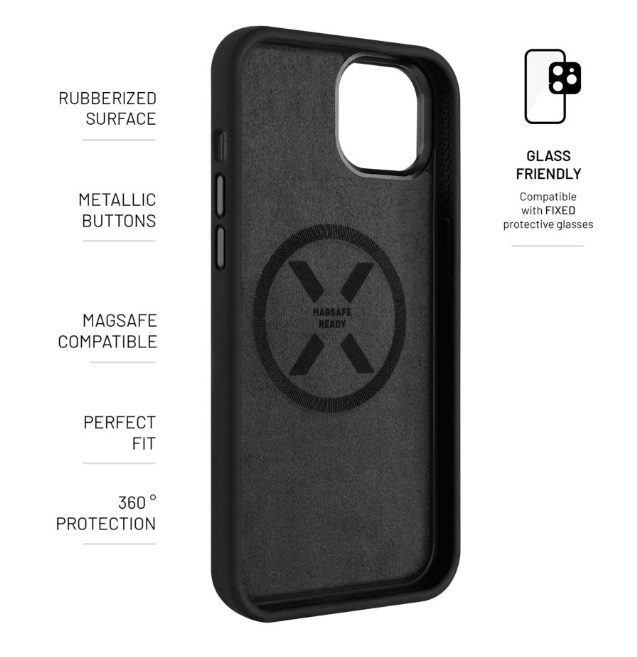 Zadní kryt FIXED MagFlow s podporou MagSafe pro Apple iPhone 15 Plus, černý