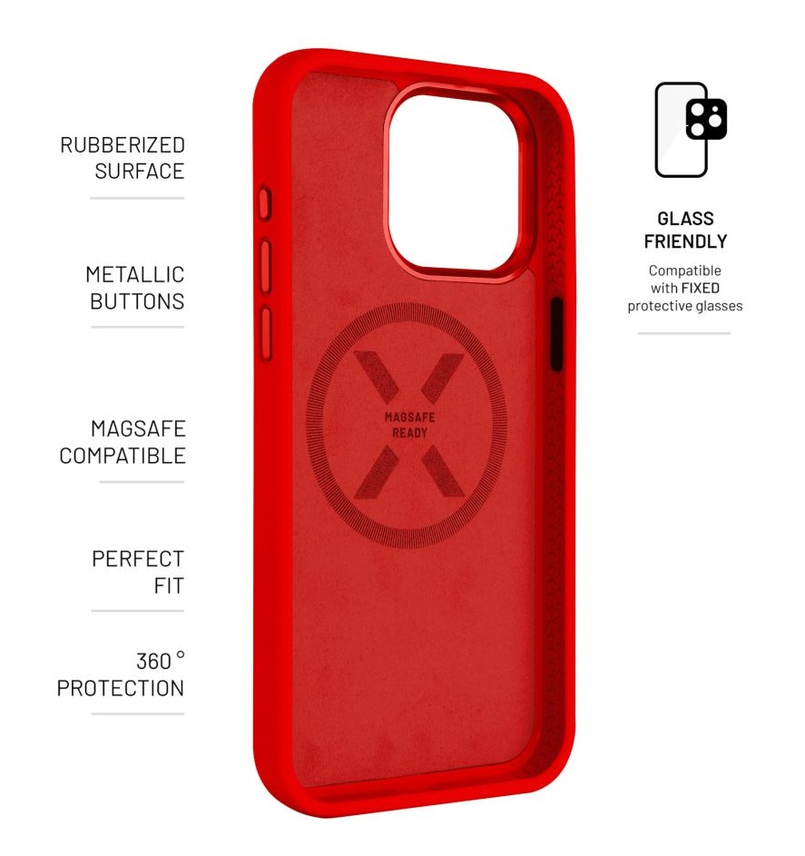 Zadní kryt FIXED MagFlow s podporou MagSafe pro Apple iPhone 15 Pro, červený