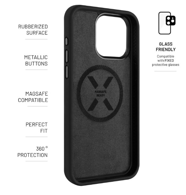FIXED MagFlow s podporou funkce MagSafe představuje tvrzený kryt v novém stylovém designu, který spolehlivě udrží váš iPhone v bezpečí za každé situace. Jeho povrch tvoří Liquid silicon - lehký a přesto odolný materiál, který je oproti klasickým silikonovým krytům hebký na dotek, neklouže a příjemně se drží v ruce. Decentní vzhled pouzdra je doplněn metalickými kryty bočních tlačítek a okraje výřezu pro fotoaparát. Na vnitřní straně chrání vložený telefon vystýlka z mikrovlákna. Díky integrovaným magnetům kryt dokonale přilne k telefonu a perfektně spolupracuje s veškerým MagSafe příslušenstvím. Bezdrátové nabíjení tak bude jednodušší a efektivnější než kdy dříve, stačí přicvaknout MagSafe nabíječku přímo ke krytu. Tělo krytu FIXED MagFlow je vyztuženo tvrzenou skořepinou a může se tak pochlubit vysokou odolností před různými pády a nárazy. Lehce přesahující okraje krytu chrání displej telefonu i čočku fotoaparátu před poškrábáním například při položení na stůl. FIXED MagFlow je navržen přesně na míru danému modelu telefonu, dokonale sedí a snadno se nasazuje i sundává. Pouzdra MagFlow úspěšně prošla standardem Military Drop Test MIL-STD-810H pro odolnost při pádu z 2m, kdy nezaznamenala žádné poškození telefonu ani pouzdra.