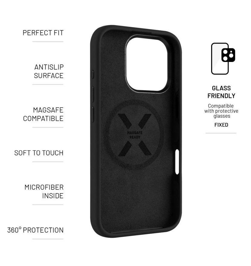 Zadní kryt FIXED MagFlow s podporou MagSafe pro Apple iPhone 16 Pro, černý