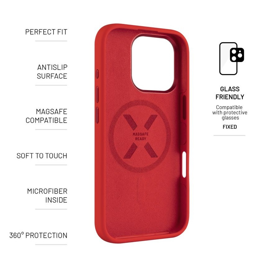 Zadní kryt FIXED MagFlow s podporou MagSafe pro Apple iPhone 16 Pro, červený
