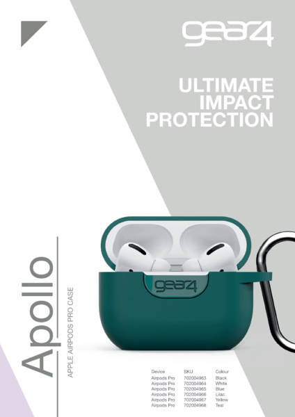 Gear4 Apollo je ochranné pouzdro vytvořené na míru Apple AirPods. Sluchátka ochrání před nárazy, pády, poškrábáním a nečistotami. Díky integrované karabině můžete pouzdro připevnit na klíče, tašku, pásek nebo kamkoliv, kam potřebujete.