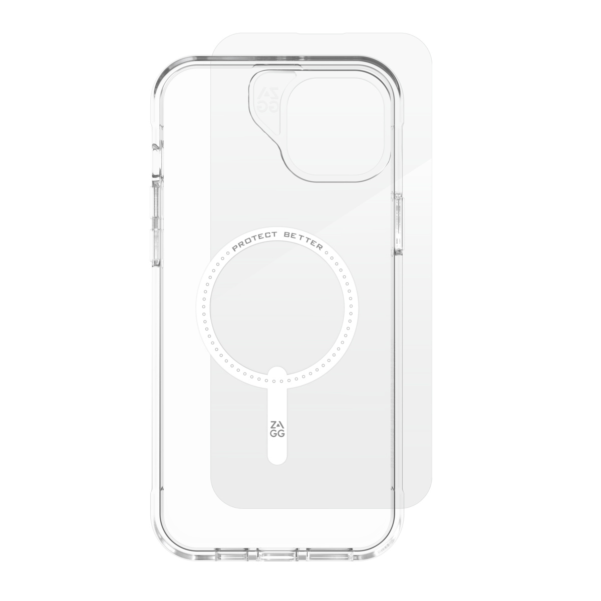Set ochranného krytu kompatibilního s MagSafe a ochranného skla. Vyroben z 95 % recyklovaných materiálů. Pro maximální odolnost byl zesílen grafenem, jedním z nejpevnějších známých materiálů na Zemi. Zařízení ochrání při pádech z výšky až 3 metrů.