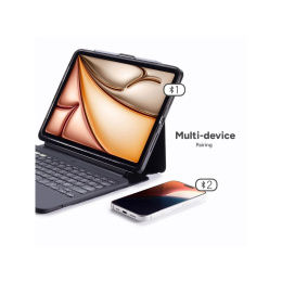 Samotný kryt je vytvořen z odolného polykarbonátu, jeho hrany jsou pogumované a rohy opatřené bumperem, kombinace těchto prvků se pyšní drop testem, který deklaruje ochranu při pádech z výšky až dvou metrů. S klávesnicí můžete spárovat až dvě zařízení současně a snadno mezi nimi přepínat.