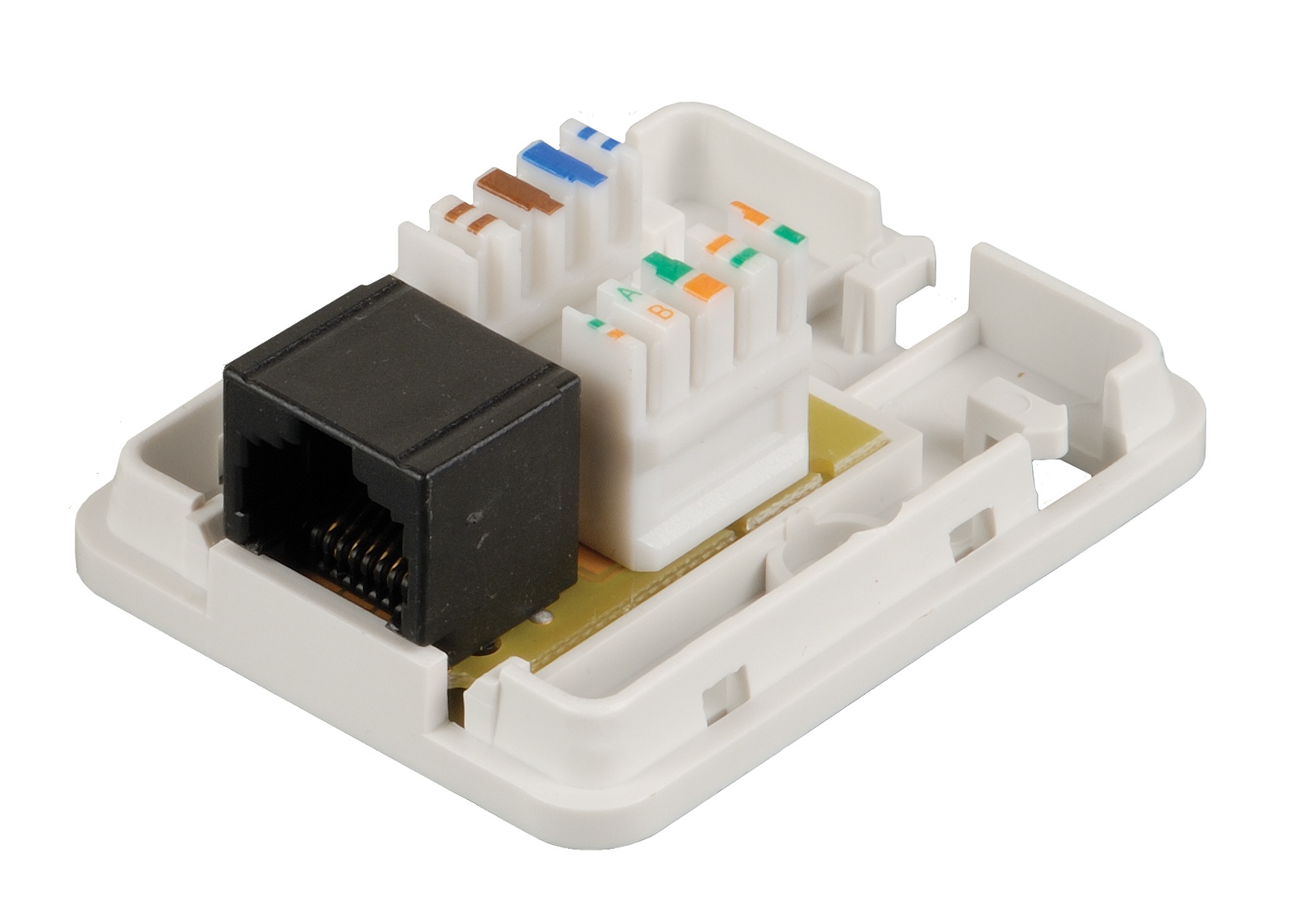 Nestíněná jednoportová zásuvka SX108 kategorie 5E k instalaci na omítku, bílá.