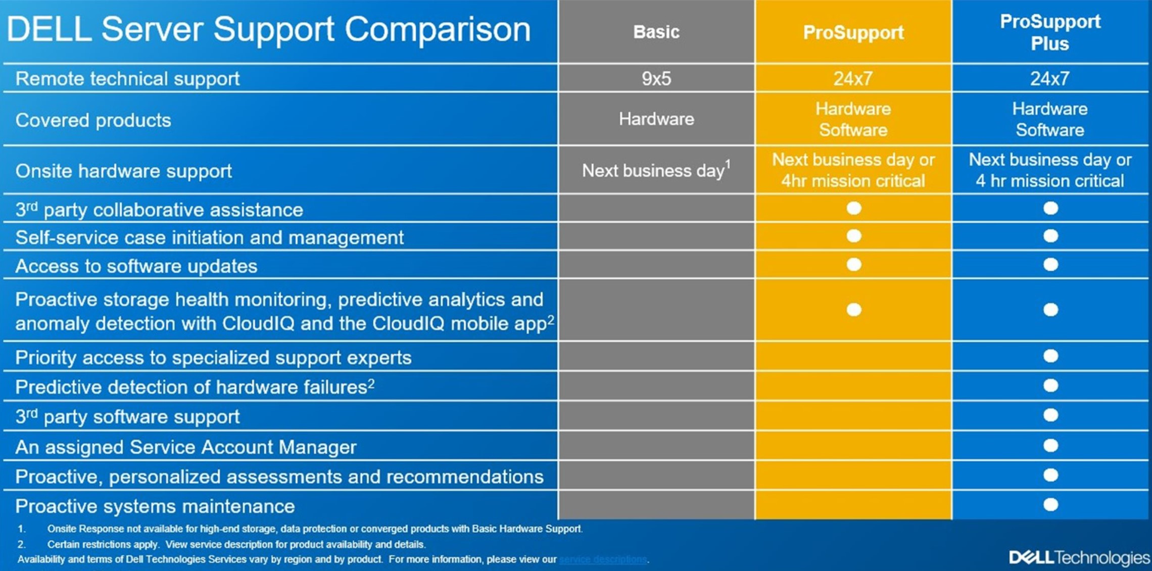 Srovnání DELL záruk uvedeno v přiložené tabulce. Dle potřeby naceníme libovolný typ a délku záruky k novým i již používaným serverům.